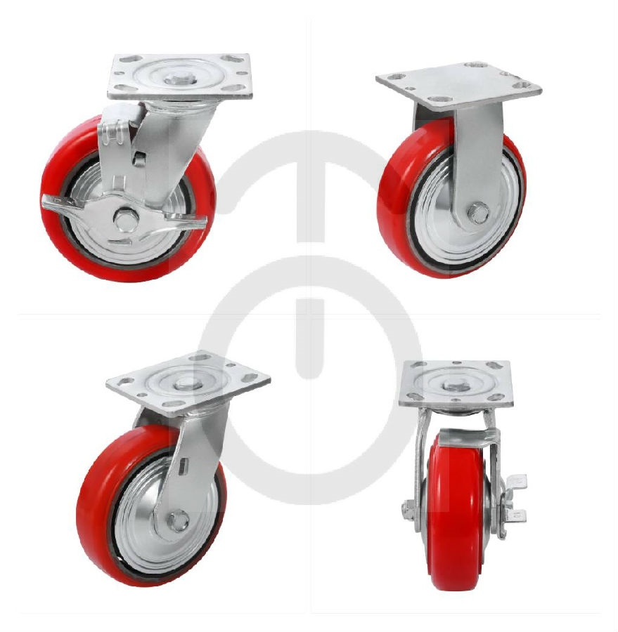 在平地上,影響腳輪運(yùn)行靈活性的因素有:支架的結(jié)構(gòu)及支架鋼的選擇、車輪的尺寸、車輪的類型、軸承等。輪子越大,就越靈活。硬的、窄的輪子比邊緣平坦的軟輪子更省力。但在不平坦的地面上,更軟的車輪省力,他們維護(hù)設(shè)備和減震器更好。